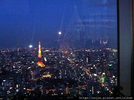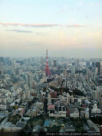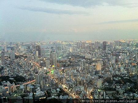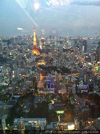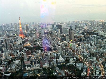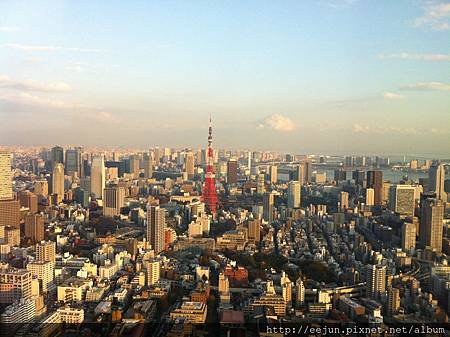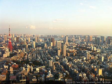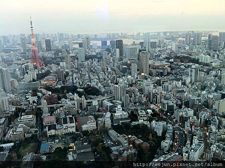 東京鐵塔的右邊,遠遠的可以看到台場。
