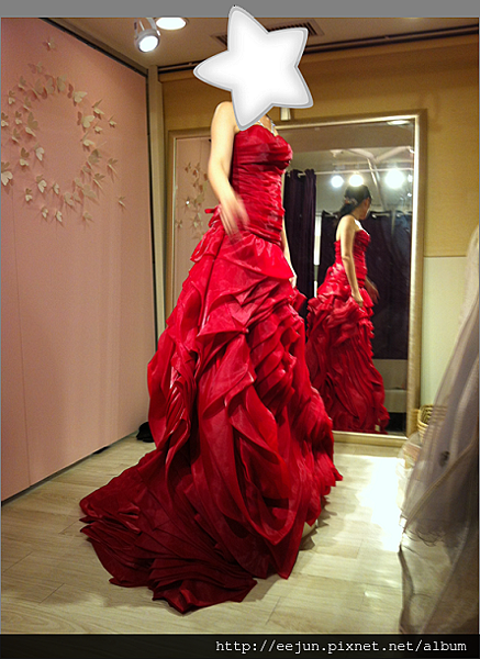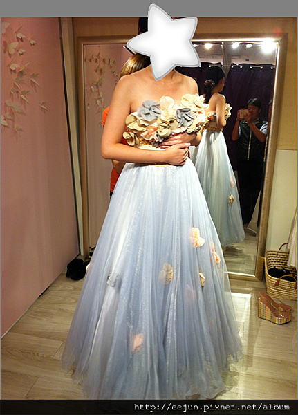 這是去年新款禮服。多層次的設計,很適合身材不好的新娘<--本人
