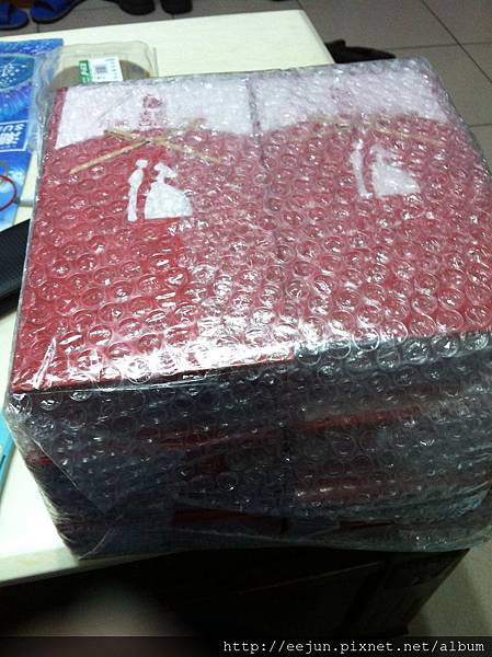 喜帖被包裝得十分密實。被許多泡泡紙圍繞。