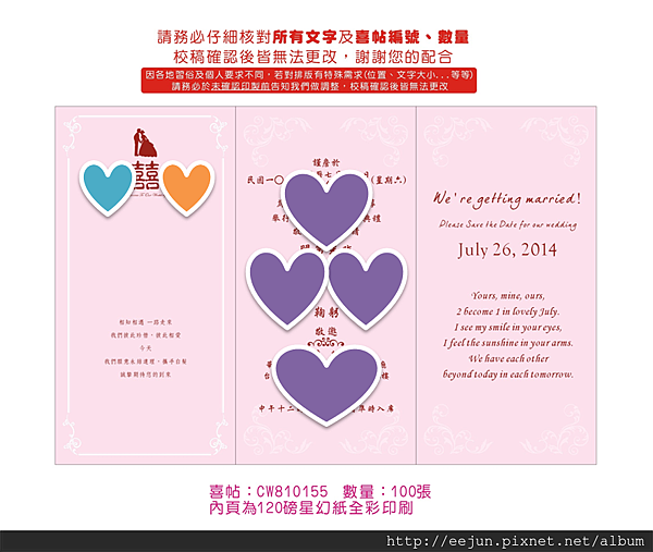 便開始一連串的校稿,喜帖中最重要的便是--名字、日期,千千萬萬不能寫錯!!