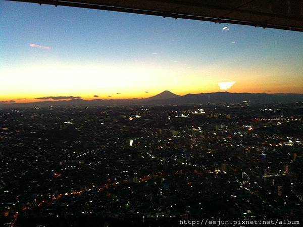 遠處還可看見富士山。夕陽伴隨著富士山。