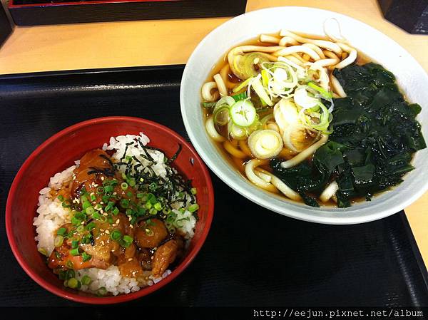 搭配昆布柴魚清高湯,烏龍麵本體好吃,不過...海帶芽有點太多,把海帶芽伴開後整碗變得太鹹...Orz