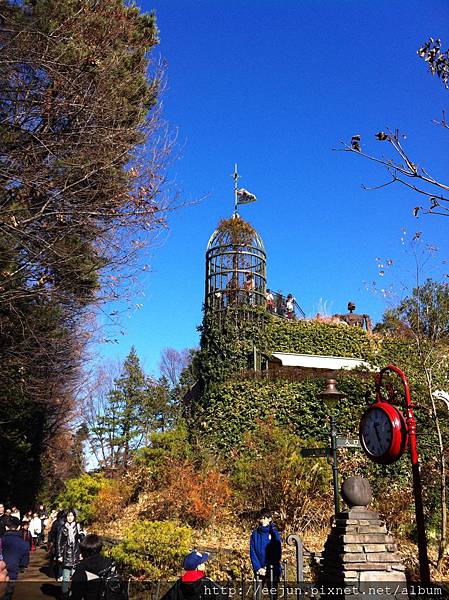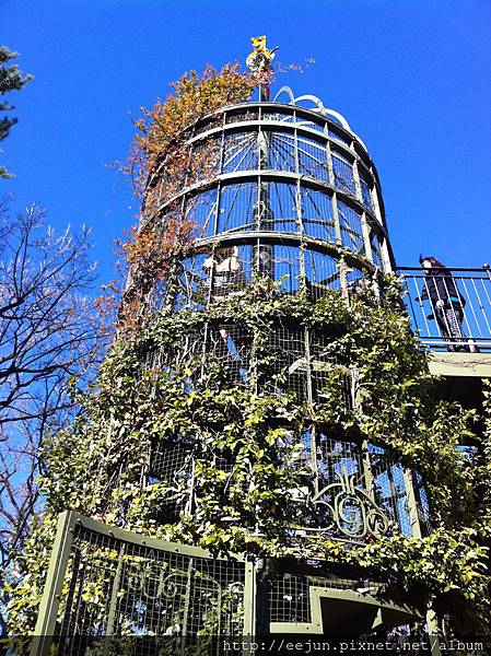 可以沿著蜿蜒樓梯上到頂樓拍照,人潮眾多。