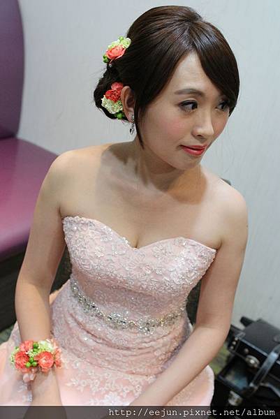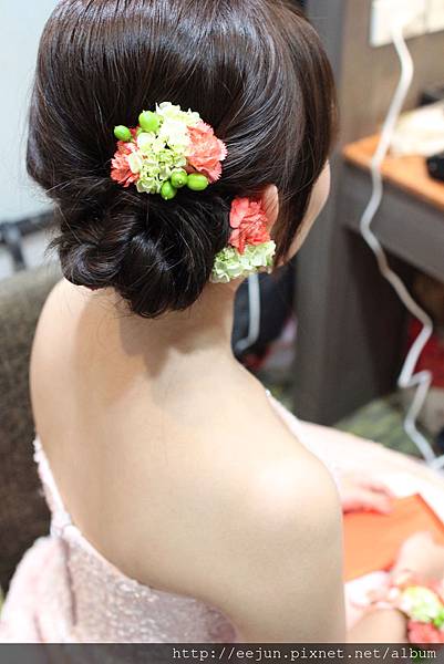 搭配的手腕花 + 鮮花髮飾,真是大大加分!!