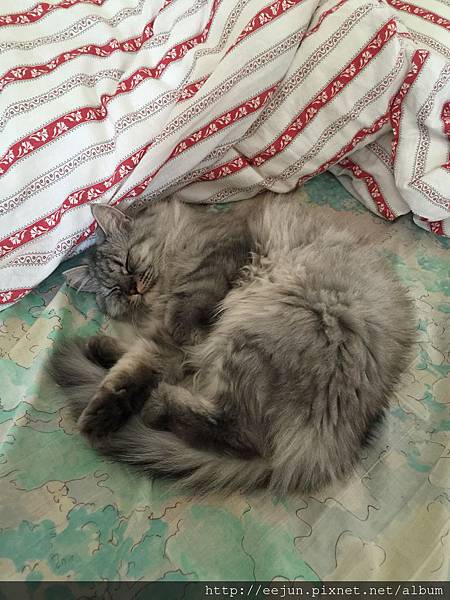 天氣轉涼,她一定又窩成一球在睡覺了。