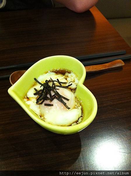 原來是甜醬汁,搭上半熟的涼溫泉蛋,