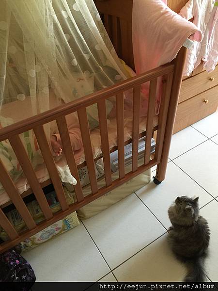 頂多我們抱著小熊貓時她會一直在腳邊磨蹭。