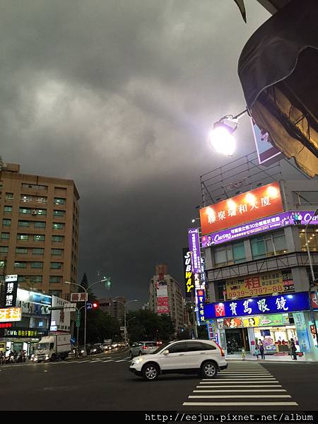 烏雲密佈,不到十分鐘開始下大雨。