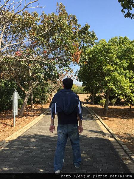 我們邊走邊聊,還到各式各樣的景觀設施探險。