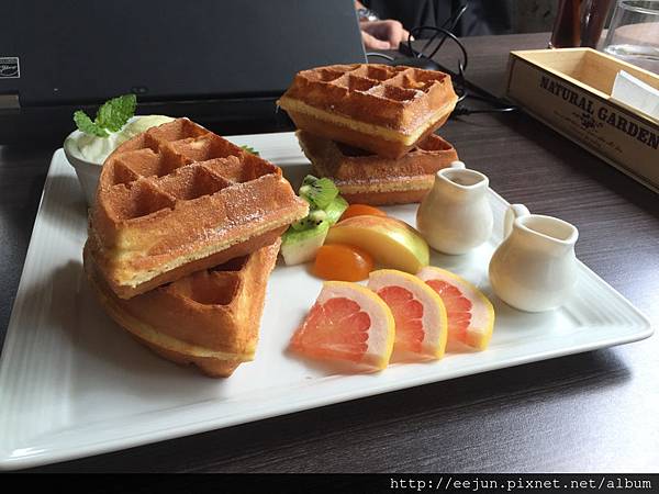 這天享用雙人下午茶 360元,包含兩杯飲料與一份鬆餅。