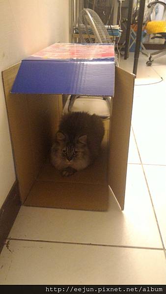 在紙箱內休息的貓咪。