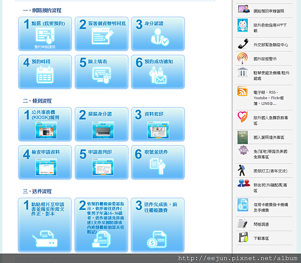 拿著申請書、證件、大頭照到網路預約專屬櫃檯,