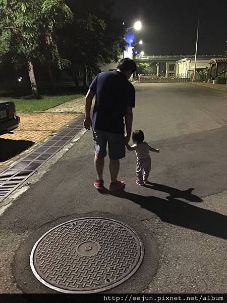 小小的手牽著,小小的步伐走著,