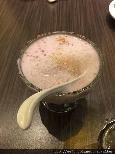 椰奶、芋泥為底,滿滿的西米露,還有一些蜜水果,