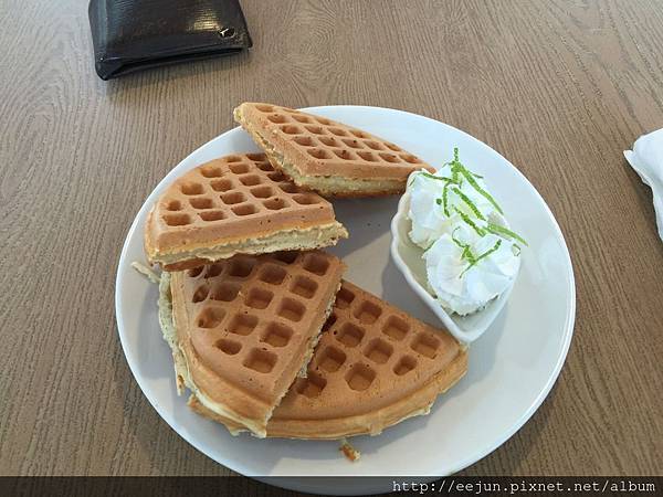 剛烤好的鬆餅搭配檸檬鮮奶油,還不錯,