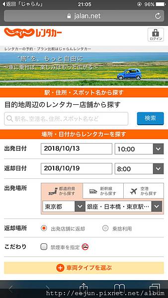 jalan レンタカー(rent car)手機版網頁,