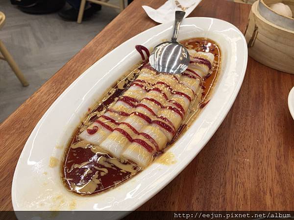 就是純粹的腸粉皮,搭配外面的甜鹹醬汁,