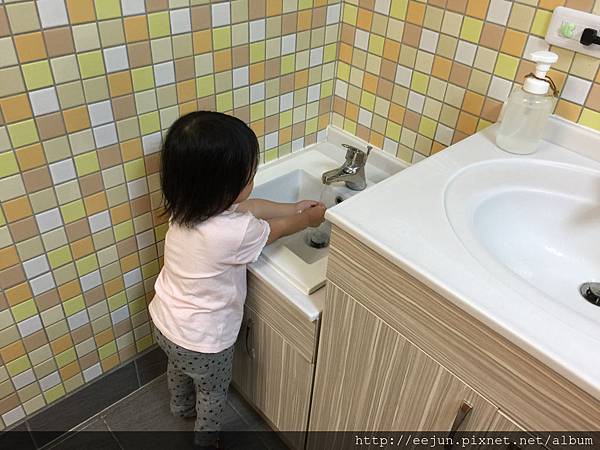 剛好二樓有親子廁所,先帶她去洗手。