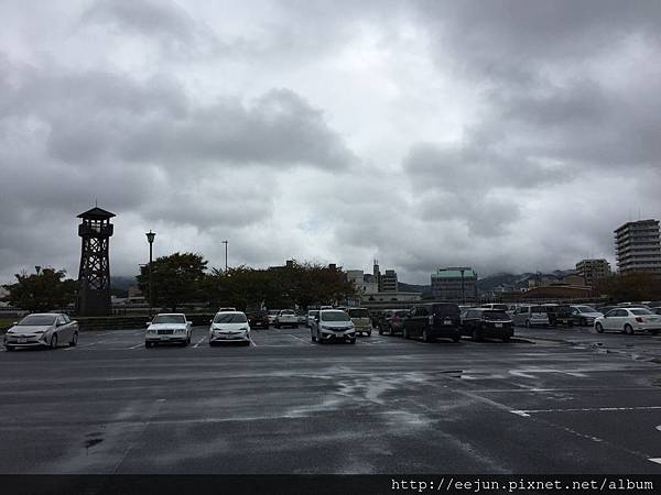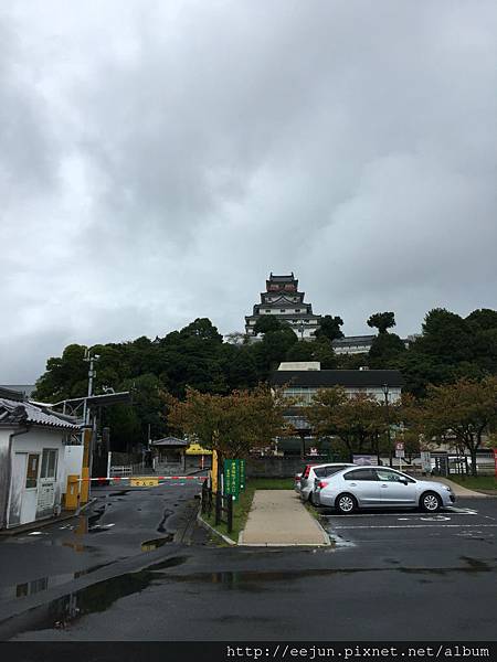 從對面停車場拍攝的城堡。停車場很大,一般轎車每小時收費100円。