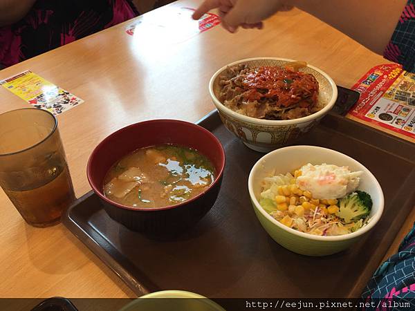 蔥泡菜牛丼 大盛 + 沙拉套餐 610+140 円