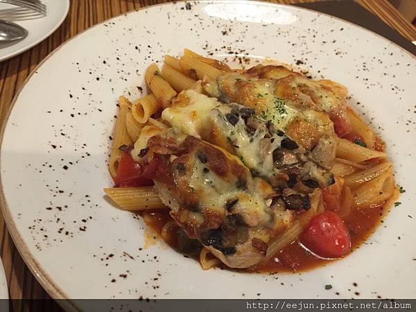主菜--焗烤起司豬排斜管麵 240元