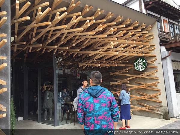 打卡熱點,星巴克太宰府店,裡面滿滿的人...