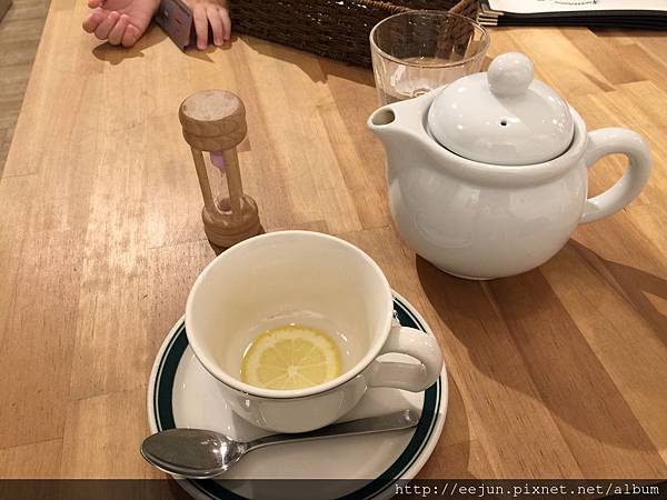 原來檸檬片是放在杯裡,店員貼心準備沙漏指示最佳飲茶時機,