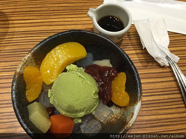 最後加點的甜點--抹茶蜜豆寒天 160元,
