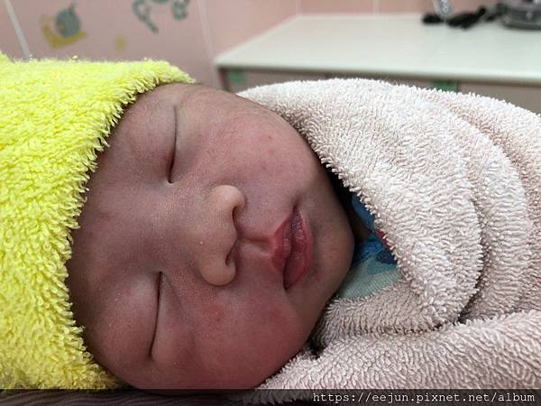 熊熊出來後,瞬間不痛了,不過麻藥還沒退,我就像任人擺佈的豬肉掛在產檯,