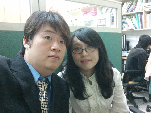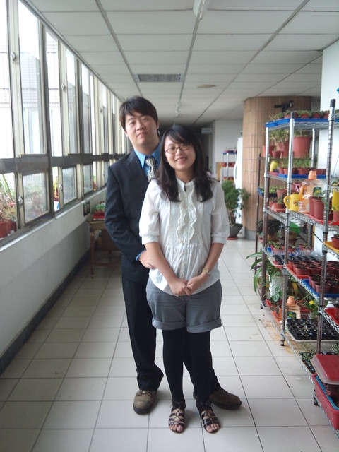 恭喜恭喜!!今天是阿笨的口試順利結束了!!!!!!昨天還很緊張的練得很晚...今天早上莫名的我開始緊張起來突然覺得到了我要口試的那天應該是死魚眼的反應吧!!汗如雨下的阿笨!!難得穿西裝只好多拍幾張真的很恭喜你!!順利的畢業了~~~灑花~~~不過接下來就要去當兵...ちょっと 寂しい。。。
