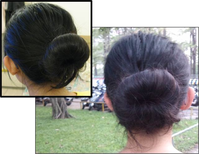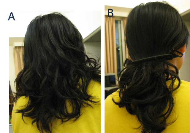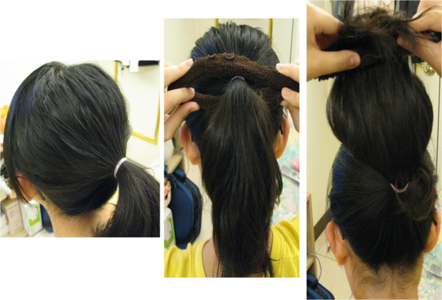 只不過要用黑髮夾把掉下來的頭髮夾好