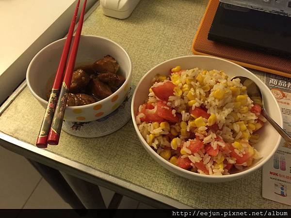 旁邊搭配的是昨晚阿笨特地不吃完的照燒雞腿。