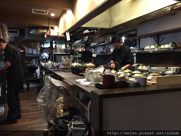 等待中不時有香氣飄來,一旁便是開放式廚房。